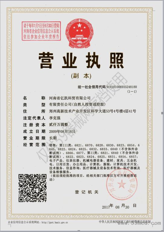 發(fā)證機(jī)構(gòu): | ??鄭州市工商行政管理局 | 發(fā)證時(shí)間 : | ??2017-08-30 |
